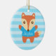Gullig lite räv i blått, för barn julgransprydnad keramik