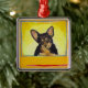 Gullig liten hundkonstsvart och julgransprydnad metall