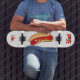Önskar vem inte denna lyckliga varmkorv under din fot, som du skridskon besegrar gatan? Denna lyckliga påminnelse som ska hållas att le, är ett utmärkt tillägg för skateboardkonstsamlaren. Ha din egna personliga du-drev weiner-mobil!