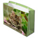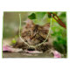 En älskvärd och förtrollande brun kattunge för tabbyMaine Coon som vilar i en trädgård och håller ögonen på med bändande upp ögon. En cutiecooniekatt som fotograferas av Katho Menden. Denna stora gåva hänger lös är en gåvaidé för catlovers. http://www.zazzle.com/kathom_photo