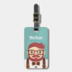En bagagemärkre med en gullig illustration av en hipstergentleman med rödaktigt hår, en moustache och ett skägg, vitskjorta, bruna suspenders och polka dotsfluga och intelligent geeky exponeringsglas. Personifiera med namn.