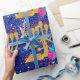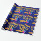 Nätt & festligt slående in papper för Hanukkah och att presentera gullig menora & den Hanukkah för glitter för Dreidels blåttFaux designen