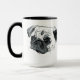 Förtjusande mopskaffemugg. Konstverk av den djura konstnären, Patricia Barmatz