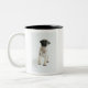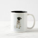 Mopsvalp som tittar uppåt på en vitbakgrund
