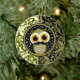 Det roliga och gulliga damastast mönster för svarten, för gult och för grönt med förtjusande polka pricker prydnadar för mustaschuggla- och för stjärnabakgrundsuggla jul och gåvajul eller några tillfället. Gulliga gåvor för för ugglaiPhoneprydnad och sakkunnig för ugglaälskare och ornithologists!