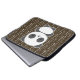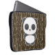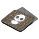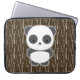 Den gulliga pandaen på en brun bambumönsterbärbar dator hänger lös