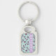 Gullig pastellfärgad turkosblommönstermonogram rektangulärt silverfärgad nyckelring