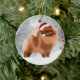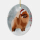 Denna gulliga julprydnad presenterar en förtjusande Santa hatt Clad Pomeranian på båda sidor.