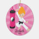 Personifiera daterad gullig röd jul för personligen för hårflickaKarate, prydnad somuppsättningen på ett blåttvatten bubblar bakgrund. Besöka vårt shoppar för att beskåda denna förtjusande karateflicka i en variation av hår & poserar.