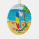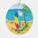 Vår unika personlig & daterade surfarejulprydnad presenterar den mest gulliga uppsättningen för stick figursurfareflickan på bakgrund för blåtthavvatten med en palmträd! Personifiera med din information och datera, och du är all uppsättning som går! Den underbara daterade minnessakgåvan för din julgran och ett underbart tillägg till dig jul smyckar samlingen.