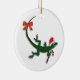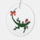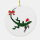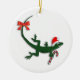 Denna gulliga lite gröna ödla är klar för jul med hans Santa hatt och candy cane och ett ljust rött band.