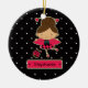 Denna keramiska prydnad för rundan har gulliga barns design av en brun något liknande för hårliten flickauppklädd en nyckelpiga. Det finns ett svartvitt polkadotsmönster i bakgrunden med en längst ner nyckelpiga. Diagram vid den Stockberry studion på Mygrafico