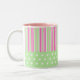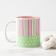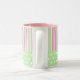 Anpassademugg som presenterar gulliga mönster av rosor och gröntrandar och polka dots.