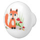 Dörrknoppen som presenterar en tecknadillustration av en gullig rävsitta bredvid en moss, täckte lite sten med röda och vitgiftsvampchampinjoner som växer på den. Ideal för vänner för en skog eller themed barnkammare för skogsmark/barnrum.
