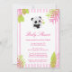 Denna gulliga baby showerinbjudan är en pandatemaperfekt för en liten flicka! Den presenterar rosor, och tränga någon tropiska löv för grönt på varje med en vattenfärgrandbakgrund. Upptill, finns det en gullig flickapanda bredvid rosa- och grönthjärtor.