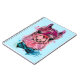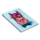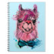 Denna design presenterar ett gulligt vattenfärgporträtt av en llama i vattenfärgstänk av rosor och blått.