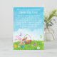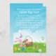 En gullig inbjudan för ett påskäggjaktparty som presenterar en tecknadillustration av ljus en rosa kanin för påskhare hållande och färgrik påskägg som tycker om vårsolskenet. Det finns påskägg och vitdaisy i gräset och fjärilarna som flyger till och med luften. Texten är fullständigt anpassadet för ditt egna speciella påskfirande.