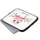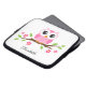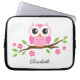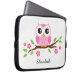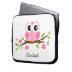 Den gullig, personliglaptop sleeve som presenterar en illustration av en lite rosa ugglasitta på en gren med gröntlöv och shock rosa, blommar. Tillfoga ett namn eller annan text. Gullig och rolig design för flickor och kvinnor.
