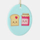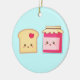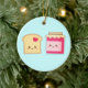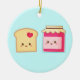 Gullig rostat bröd- och jordgubbesylt, spridd julgransprydnad keramik