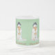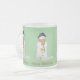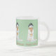 Gullig snögubbe med julstrumpan i snön frostad glasmugg