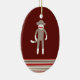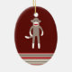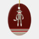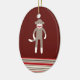 Gullig sock monkey på rött med randar julgransprydnad keramik