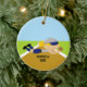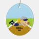 Gullig softballspelare i blått- & grå färgprydnad julgransprydnad keramik