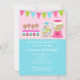 Starta din söta flickafödelsedagsfest av höger med vår söta festbarns födelsedaginbjudan som presenterar en bakgrund för turkosblåttpolka dots & ett rosa-, grönt- & blåttfödelsedagbaner med en gummibollmaskin, klubbagodisen & en muffin. Gulligt för en första flick kalas, godisfödelsedagsfest, sötsaker födelsedagsfest eller sommarfödelsedagsfest. Besöka vårt shoppar för att beskåda andra gulliga födelsedagsfest inbjudan & matchatackkortet, klistermärkear & portofrimärken. ©Babystar designer