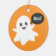 Gullig spöke, som går bu, happy halloween julgransprydnad keramik