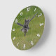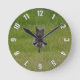 Gullig tävla för grå färglantgårdkatt över det rund klocka