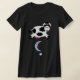 Svart- & vitkvinna' skjorta för utslagsplats med en gullig ko som hoppar över en måne- & stjärnatecknadillustration. Klicka på "skräddarsy den" knäppas för att välja formatet, utformar och färg av ditt skjorta, tanktop, tröja eller hoody för utslagsplats. Behaga besök mitt lager för Mollyhimmeldesigner för spansk landskap- & djurfotografi & laddar av gulliga & retro illustrationer för roligt. En lång räcka av tillgängliga produkter: muggar; travel mug; nyckelringar; gymnastikskor; frimärken; T-tröja; ties; skateboards; magneter; hälsningkort; vykort; mus mattor; förkläden; ties; bekläda för hund; hänger lös; knäppas/förser med märke; klistermärkear; lock; gifta sig släkta produkter; barn & barnkläder; hängande prydnadar; stift/broscher; bokmärken (i i stora partier); affischer & limbindningar.