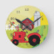 Den gulliga väggen tar tid på som presenterar en lantgårddesign av en röd traktor med en tupp överst, framme av en röd ladugård och siloen. Skräddarsy dessa tar tid på den skulle looken som är förtjusande i barnets sovrum, en themed bebisbarnkammare för land eller ett themed hem för land.