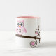 Gullig flickaktigt rosa rolig uggla på en trädgren och gulliga rosa blommor på rosa krickamönsterbakgrund den perfekta humorgåvaidén för någon