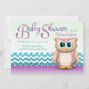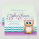 Förtjusande inbjudningar med en lila- & turkosfärgintrig och en gullig uggla. Bra för både flicka- och/eller genderneutraltbaby shower.