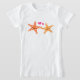 En gullig t-skjorta för flickor och kvinnor som presenterar två orange, kawaiistil, händer för tecknadsjöstjärnainnehav med två rosa hjärtor in - dem emellan. Rolig och färgrik designför barn.