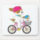 En koppla ihop av gulliga valper som ha på sig deras hjälmar, rider en cykel med en som en bärare för passagerare framtill.