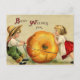 Gullig vintagethanksgivinghälsning med barn och en pumpa.