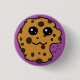 En gullig choklad kaka knäppas med en purpurfärgad bakgrund.