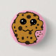En gullig choklad kaka knäppas med en rosa bakgrund.