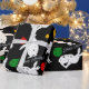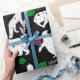 Mycket unikt slående in papper för helgdagar. Gör ditt paket att stå ut med denna enorma design som presenterar rävar, björnar, pingvin och kaniner i vit på en svart bakgrund. Röda, gröna och guldprydnadar och ordglad helg kör tillsammans med djuren.