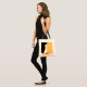 Denna kanfasshopping bagdesign presenterar en tecknad av en kejsarepingvin i tre färger - svart, vit och orange. Den har en svart baksida, och vingar, en vit beklär, det svartvita ögat, och orange fot och näbben. Den är mer av en stylized tecknad, som användan av orangen i tecknaden inte matchar exakt orangen lappar på en verklig kejsarepingvin, men en gullig pingvin planlägger ändå.