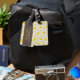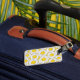 Themed bagagemärkre för gullig och nyckfull blomma som presenterar ett mönster av vitdaisy med att le uttryck på en sida och utrymme för din namn och adress på det omvänt. Ta copyrightt på © Lisa Marie Robinson som all rättigheter reserverade. Det är olagligt att använda eller att duplicera detta eller några av vår bilder, utan skriftlig tillåtelse.