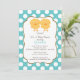En söt inbjudan för baby shower för påsktwillingarchick som presenterar ett gulligt, parar av den tvilling- bebischickuppsättningen på en blått, och vitpolkaen pricker bakgrund. Tillgängligt för flickor, pojkar & twillingar i vårt shoppa. Matcha produkter som är tillgängliga i vårt, shoppa också på www.celebrateitinvites.com. ©Zenware