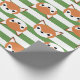 Detta gulliga slående in papper presenterar orange rävar, och grönt- och vitrandar.