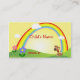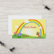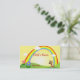 Söta diagram av en regnbåge, blommor och en valphund, på en gult- och gröntbakgrund. Text sätter in all redo för att skräddarsy för ditt barn, att tillfoga mer textfält på bekläda eller baksidaen av denna förtjusande telefonkort.