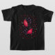 Rolig främlingungeutslagsplats med en gullig illustration av röda tecken med tre ögon som flyger med deras mycket små vingar och lyckligt ler. Rött och grå färg lämnar att flyga all över. Denna illustration är blandat massmedia - förkroppsliga av utomjordingar göras från en vattenfärgteckning av abstrakt löv, och vila målas digitalt.