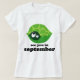 Skygga lite sköldpaddan för att mamman ska vara med rakt in slogan för September gravidmeddelande. Färgrik tecknadsköldpadda med September babyslogan.