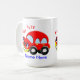 En sådan gullig mugg för en pys med en rolig tecknadbil i rött, slösar och gulnar och så lätt att personifiera med ett namn för det extra speciella handlag.