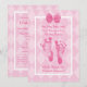 En gullig baby showerinbjudan för en dyrbar flicka med en pastellfärgad rosa argylemönsterbakgrund som lite förskönas med bebisfotspår för sötsak och ett moderiktigt rosa band som binds in i en pilbåge. Bekläda läser: Itsy bitsy bebisfot. Hon har en flicka, oh hur sötsaken. Personifiera, genom att tillfoga namn av modern för att vara. Den utskrivavna lägenheten avbildar, det inte faktiska bandet.