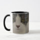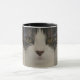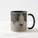 Denna är en gullig grått- och vitkatt mugg för kaffe för mönster för foto för ansikte för kattälskare! Absolut "meowlicious"!