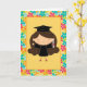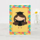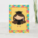 Detta förtjusande studentenkort är perfekt för högstadiumstudenter, högskolagrads, dagisstudenten och mer. Gulligt flickastudentinnehav ett diplom med ljust färgad blommig bakgrund.